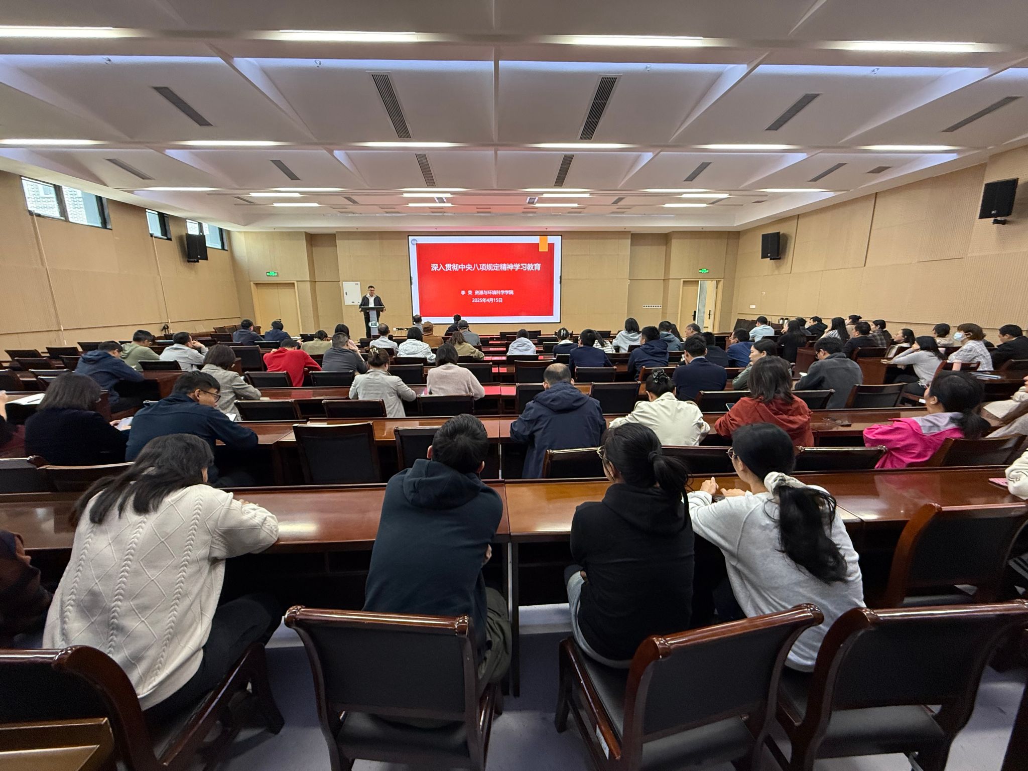 召开深入贯彻中央八项规定精神学习教育全院教职工大会。学院领导班子成员、全体教职工和部分学生党员代表参加集中学习。