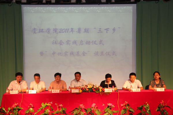 会上,徐院长首先宣读了包括“千乡万村环保科普行”实践服务团在内的4支学院重点立项团队名单。紧接着中化化肥有限公司江苏分公司总经理朱年祥讲话,朱总介绍了中化化肥企业的背景和公司始终贯彻的服务三农的经营理念,并强调要在今年校企合作框架协议的基础上继续深化加强合作交流。随后举行了中化社会实践基金捐赠仪式,朱总代表中化江苏分公司向学院学生社会实践人才培养基金捐赠3万元人民币。