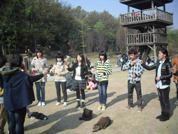 游戏结束后,大家围在一起聊天吃东西,不亦乐乎。作为东道主的我们带领南特朋友们到校园参观,他们一直感叹校园的古朴,并邀请我们去他们那里做客。