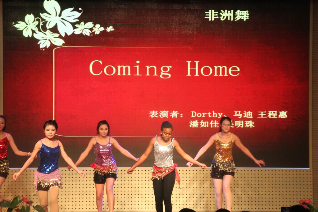 中场游戏后的节目同样精彩不断,掌声也因此从未停歇!贴合实际,以毕业生成婚压力大为背景的小品《南农女婿成婚计》把剧中人物扮演地绘声绘色,妙趣横生,博得了台下观众的阵阵掌声。由非洲留学生Dorthy等人表演的非洲舞《Comging Home》更是精彩绝伦,台下观众无不被这非洲民族朴实欢快的异域风情所感染,并不约而同地为台上的表演打起了拍子。下半场的晚会中,学院团委书记、研究生辅导员万小羽老师的一曲《小手拉大手》用优美动听的歌声给大家带来了新年的祝福,将整场晚会的气氛推向了高潮。