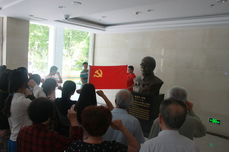 关工委退休教师与学生党员一起在资环楼黄瑞采铜像前参加“重温入党誓词”活动。出席本次活动的有吃瓜网