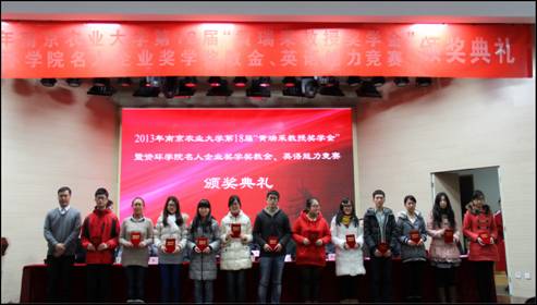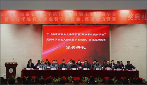 名人企业奖学奖教金、英语能力竞赛颁奖典礼在大学生活动中心隆重举行。江苏省农科院院长、黄瑞采教授基金理事长严少华,中科院南京土壤研究所书记蔡立,江苏省农委副主任戴志新,环境保护部南京环境科学研究所副所长李德波,黄瑞采先生家代表属黄克明,吃瓜网