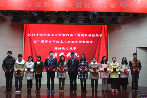 企业奖学金"、英语能力竞赛获奖学生代表孙光稷对设奖企业和学院表示了感谢,用自身经历与感悟诠释了兴趣是最好的老师,自信是必不可少的因素,而实力是最好的强心剂。省农科院资环所所长艾玉春作为校友获奖代表发言,他对母校给予的荣誉和老师、同事的帮助表示深深地感激。他告诫同学们要积极参加社会实践活动,勤奋创新,并请求大家对农科所持有一如既往的关心和支持,祝愿大家未来一切顺利。