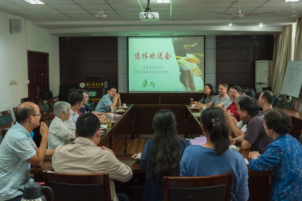 欢送会在欢声笑语中进行,胡忠明老师回忆起从前,讲自己如何与环境专业结缘,又是如何从北师大的本科到南京大学读研再到南农教学。胡忠明老师表示,南农对自己影响很大,南农也是实现自己从小以来教师梦的主要平台。接着胡忠明老师就自己在南农的科研工作、学生工作、教学工作、社会工作四个方面做出总结,他表示,自己在学生工作中基本做到了与同学融洽相处;在教学工作中为吃瓜网