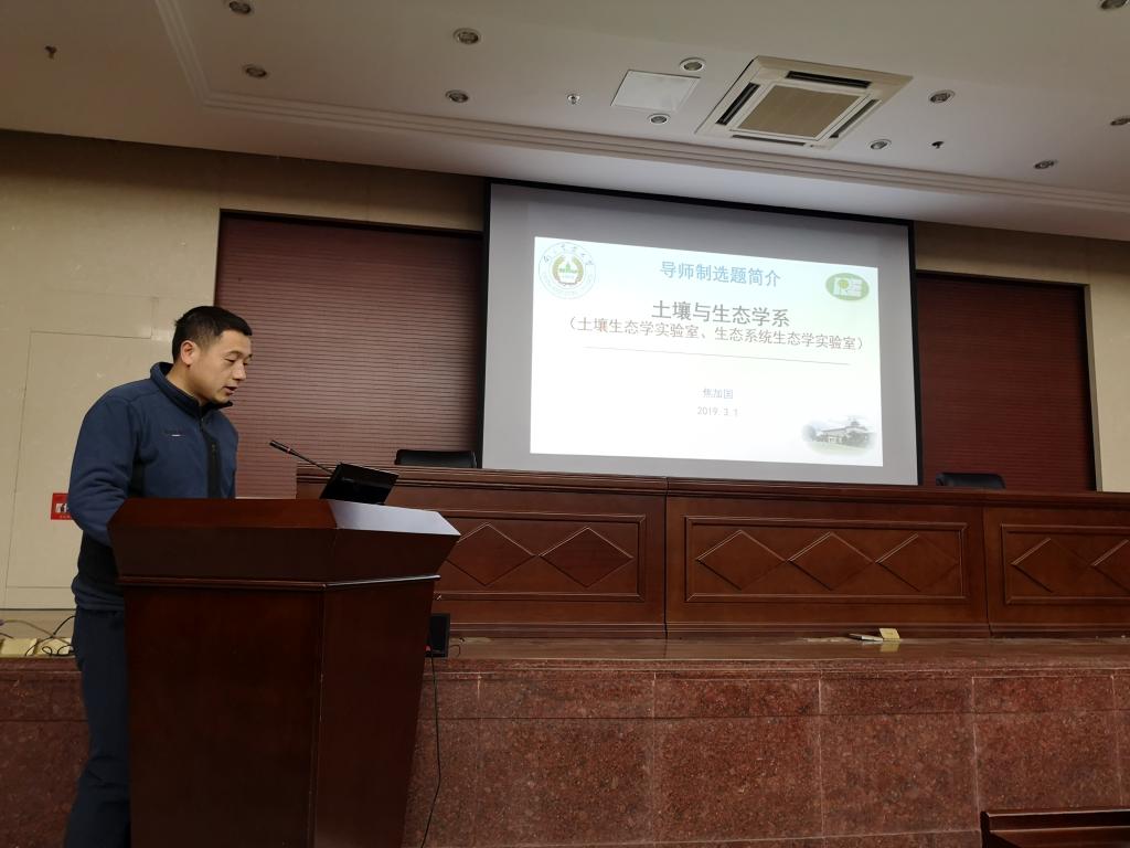 会议伊始,张旭辉老师向同学们介绍了本次会议参加的各位系主任,他们分别是:植物营养与肥料学系朱毅勇教授、环境科学与工程系孔火良教授、海洋系赵耕毛教授、土壤与生态学系焦加国副教授。接着,各位系主任以PPT的形式依次向同学们介绍各系的历史、科研情况、优势研究方向等,加深了同学们对学院和专业的认识, 明确了导师制题目的选择方向。