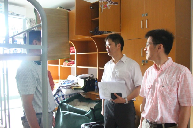 随后,一行人来到了新生所在的宿舍,仔细询问新生入宿情况,并与新生家长亲切交流。