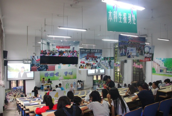 志愿者们从9月3日下午开始装扮迎新教室,迎新教室里挂满了资环学子生活掠影的展板,以期待给新同学展示吃瓜网