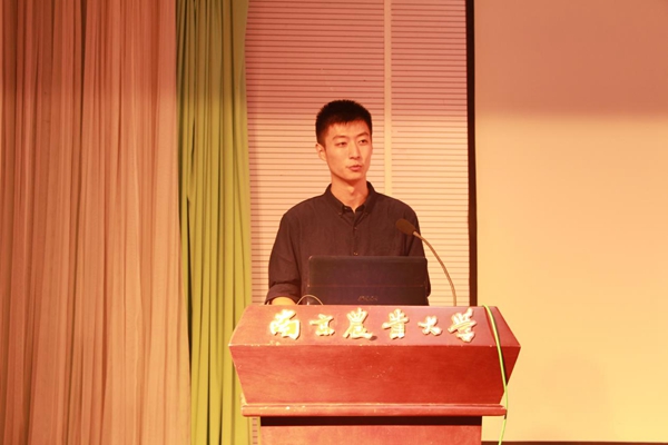 随后,院学生会主席谢约翰发表了题为《学会选择 做好自己》的演说。自我介绍中,谢约翰流利的英语引来全场阵阵喝彩。接着,他主要从学会选择,做好自己,就要“有所付出,有所舍弃”;“不忘初心,专业报国”;“自觉担当,知难而进”三个方面鼓励新生在大学生活中做好取舍的选择题,找到自己的目标,收获明朗的人生。