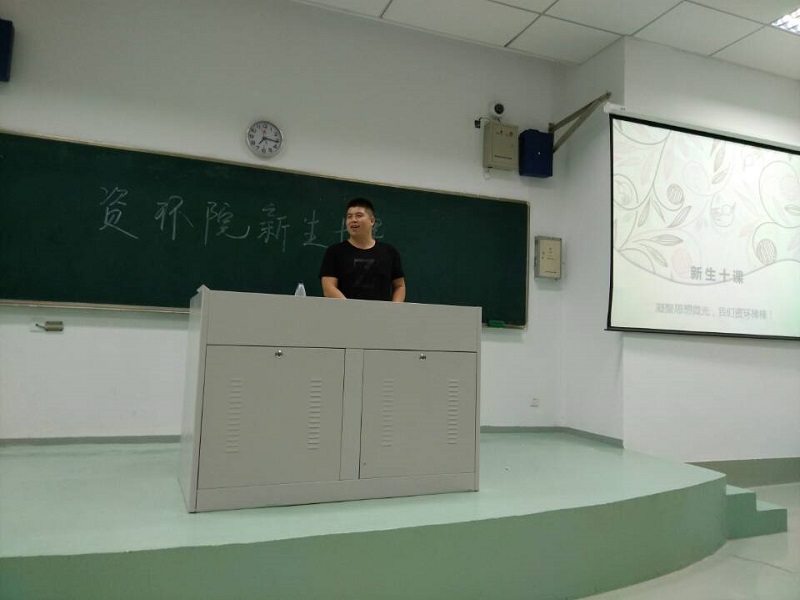 辅导员孙国成老师表达了对2017级新生的欢迎与期许。他希望182名新生都能成为自信、积极、勤奋、专业的资环青年。同时他也希望同学们时刻注意安全,在大学里要锻炼身体、学习知识、结交朋友。