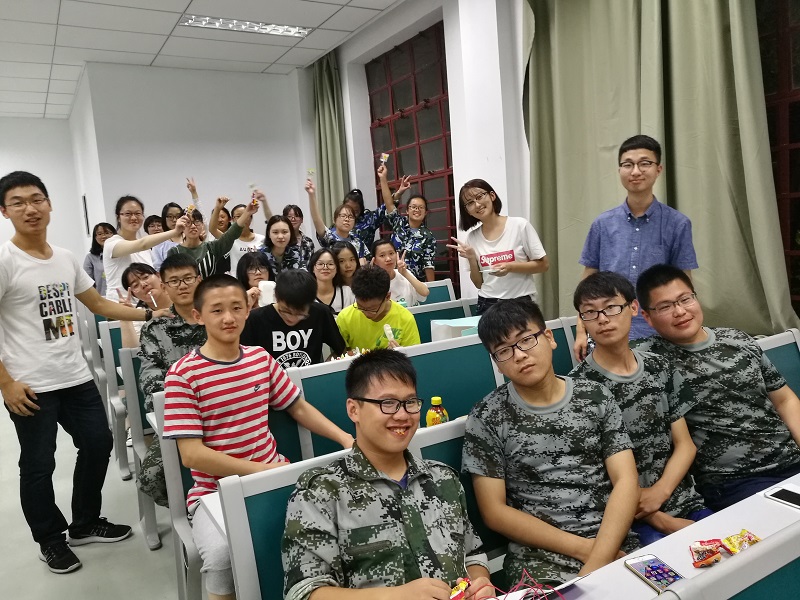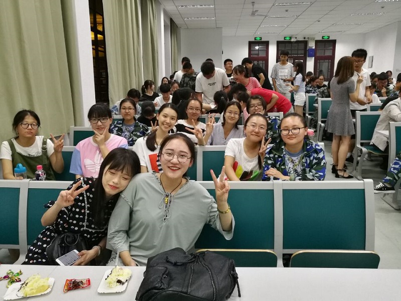 课程结束后,环工类1704班团务助理羌頔邀请了环工类172班周兴和环工类176班胡夏茹两位同学分享下自己课堂学习感受。两位同学上台后,教室内突然响起“生日快乐”背景音乐,PPT随之切换为生日祝福,原来这天是这两位同学的生日。随后,6位团务助理均提着蛋糕进入教室,九月份过生日的新生名单如数出现在PPT上。原来,团务助理们以“新生十课”为契机,筹备了一场九月新生生日会,为全体新生准备了一份大大的惊喜。