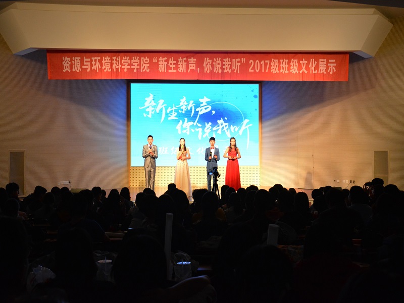 在大学生活动中心举行了以“新生新声 你说我听”为主题的2017级班级文化展示活动。